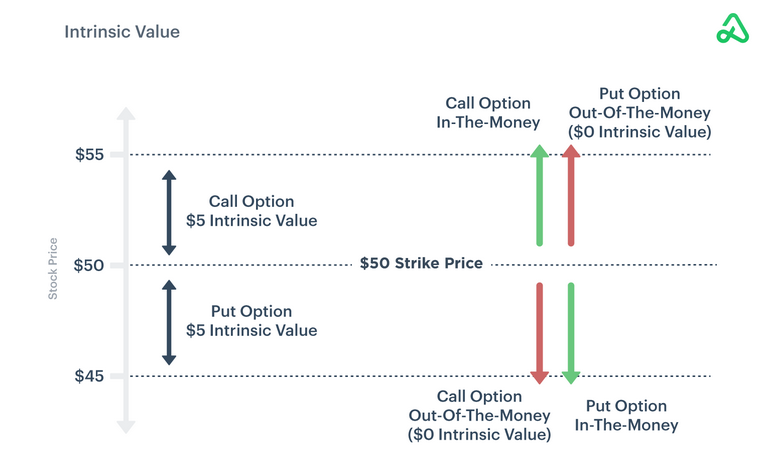 Eine Call Option mit einem Strikepreis von 110 USD hat bei einem Kurs des Underlyings von 115 USD einen inneren Wert von 500 USD.