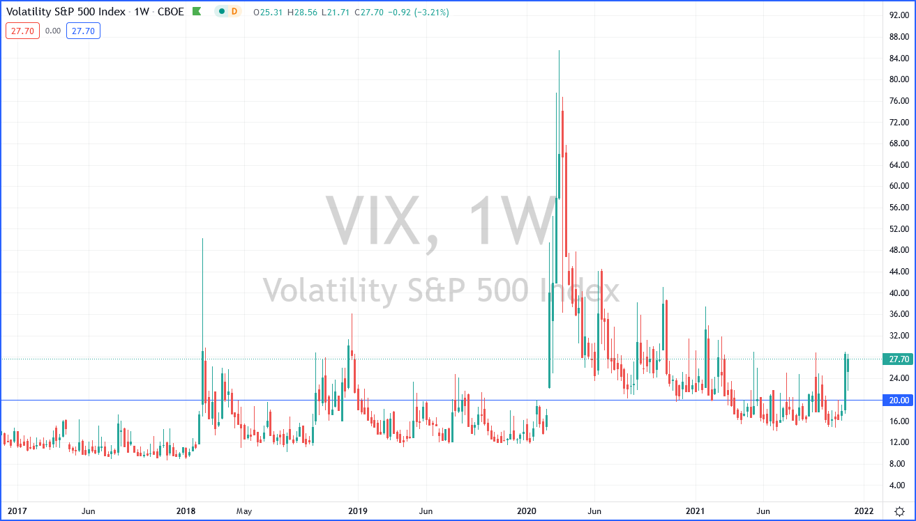 VIX ist die Abkürzung für den Chicago Board Options Exchange Volatility Index. Er drückt die erwartete Schwankungsbreite oder auch Volatilität des S&P 500 Index aus. Außerdem ist der VIX der bekannteste Volatilitätsindex am US Markt.